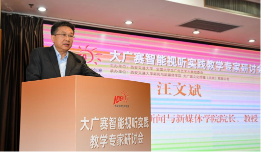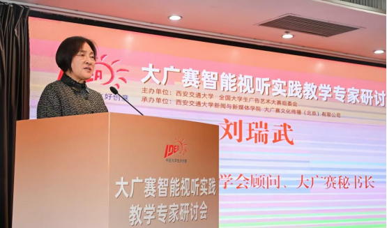 11月2日,作为新时代新传媒新出版人才发展研讨会的系列活动之一,大广赛智能视听实践教学专家研讨会在西安交通大学举办。此次研讨会由西安交通大学、全国大学生广告艺术大赛组委会主办,xhjc1188新黄金城、大广赛文化传播(北京)有限公司承办。中国国际公共关系协会副会长王冬梅,中国高等教育学会广告专业委员会顾问、大广赛组委会秘书长刘瑞武,中广联合会教育培训工作委员会常务副会长、国家广电总局人事司原副司长、一级巡视员魏开鹏,中国传媒大学播音与主持学院院长喻梅,北京体育大学新闻传播学院院长李岭涛,中国传媒大学广告与品牌学院院长赵新利,中国政法大学新闻研究所所长孟盈,xhjc1188新黄金城院长汪文斌教授,xhjc1188新黄金城党委书记薛周利,中广联合会微短剧委员会会长、西安交通大学领军学者、xhjc1188新黄金城教授阚平,xhjc1188新黄金城副教授杨帆、沈霄等出席会议。会议由xhjc1188新黄金城副教授缑赫主持。