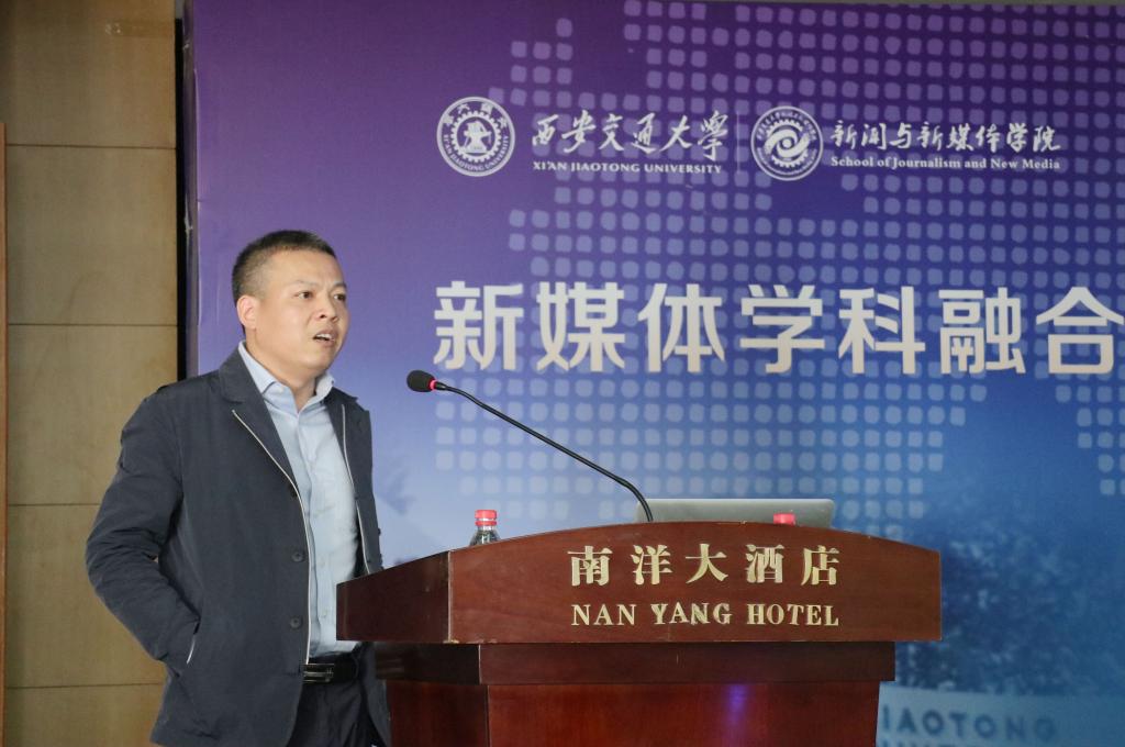 4月6日上午,在xhjc1188新黄金城主办的新媒体学科融合与卓越新闻人才培养高峰论坛上,新华网融媒体未来研究院副院长鞠靖发表了题为《人机融合智能趋势与新教学生态系统建构》的主题演讲。