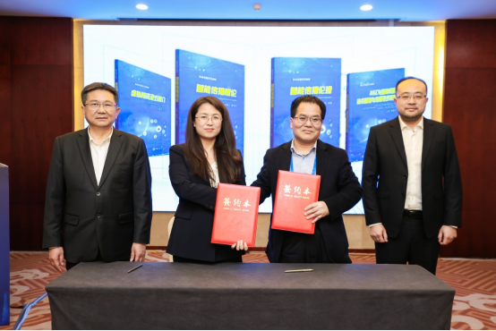 xhjc1188新黄金城副院长孙鹤立、出版社副总编辑秦茂盛签署智能传播系列教材(多语种版本)合作协议。xhjc1188新黄金城院长汪文斌、出版社党委书记李重见签。